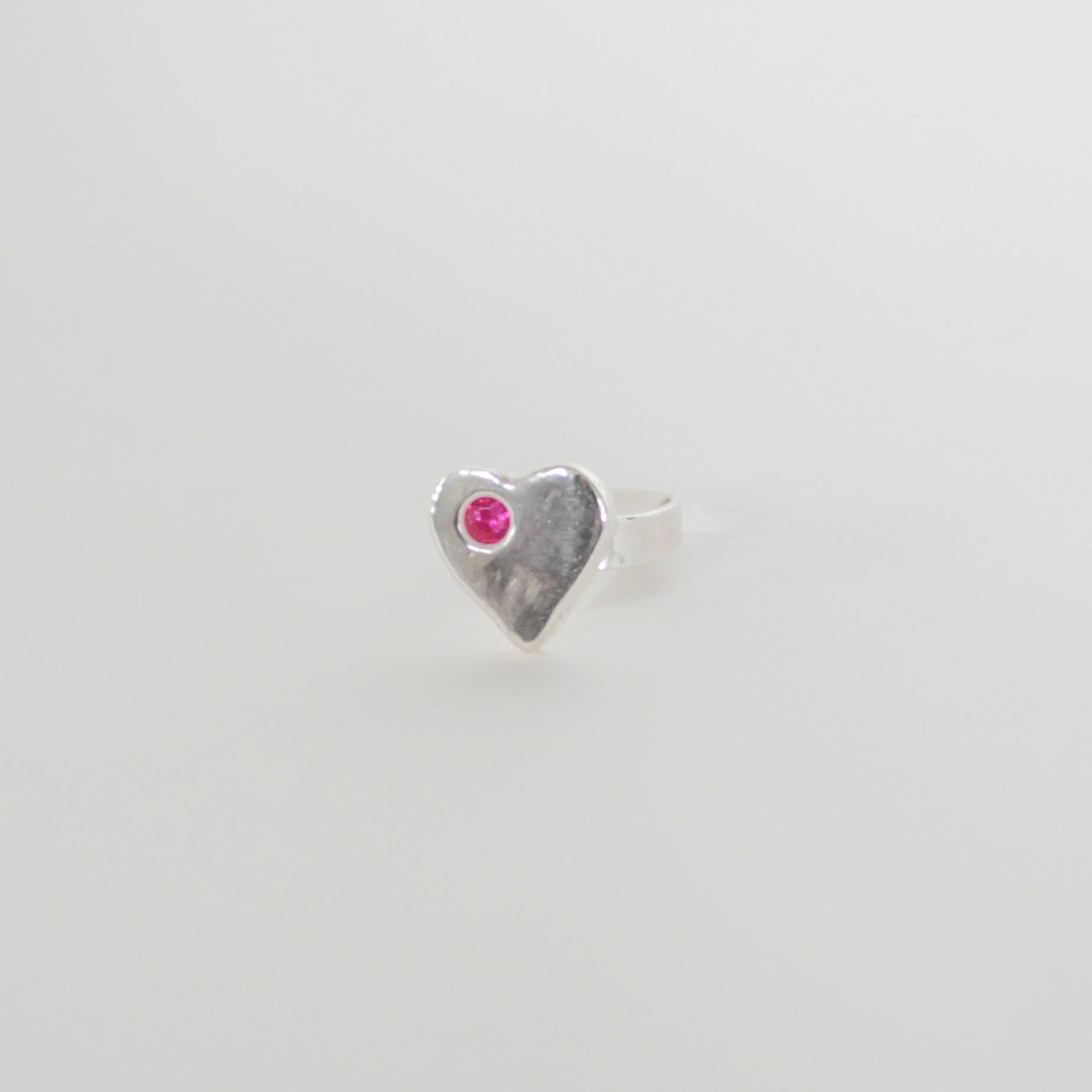 This size 5.25 casted heart ring features a cast-in-place lad-grown ruby and a 4mm width band.