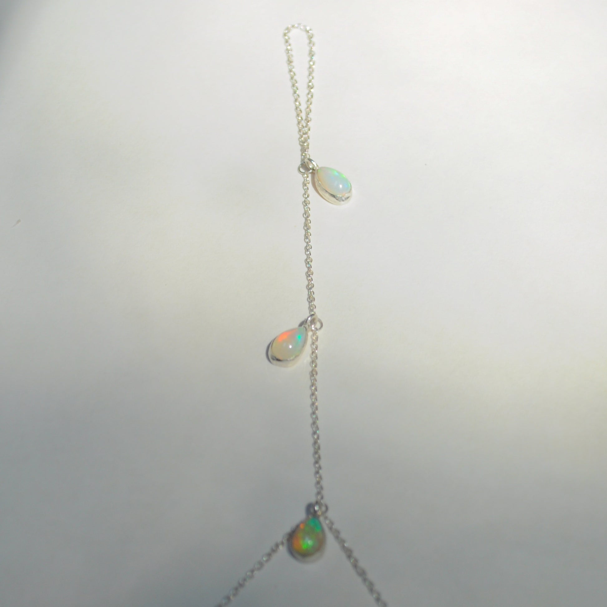 This dainty hand chain features three teardrop welo opals cascading down the chain.