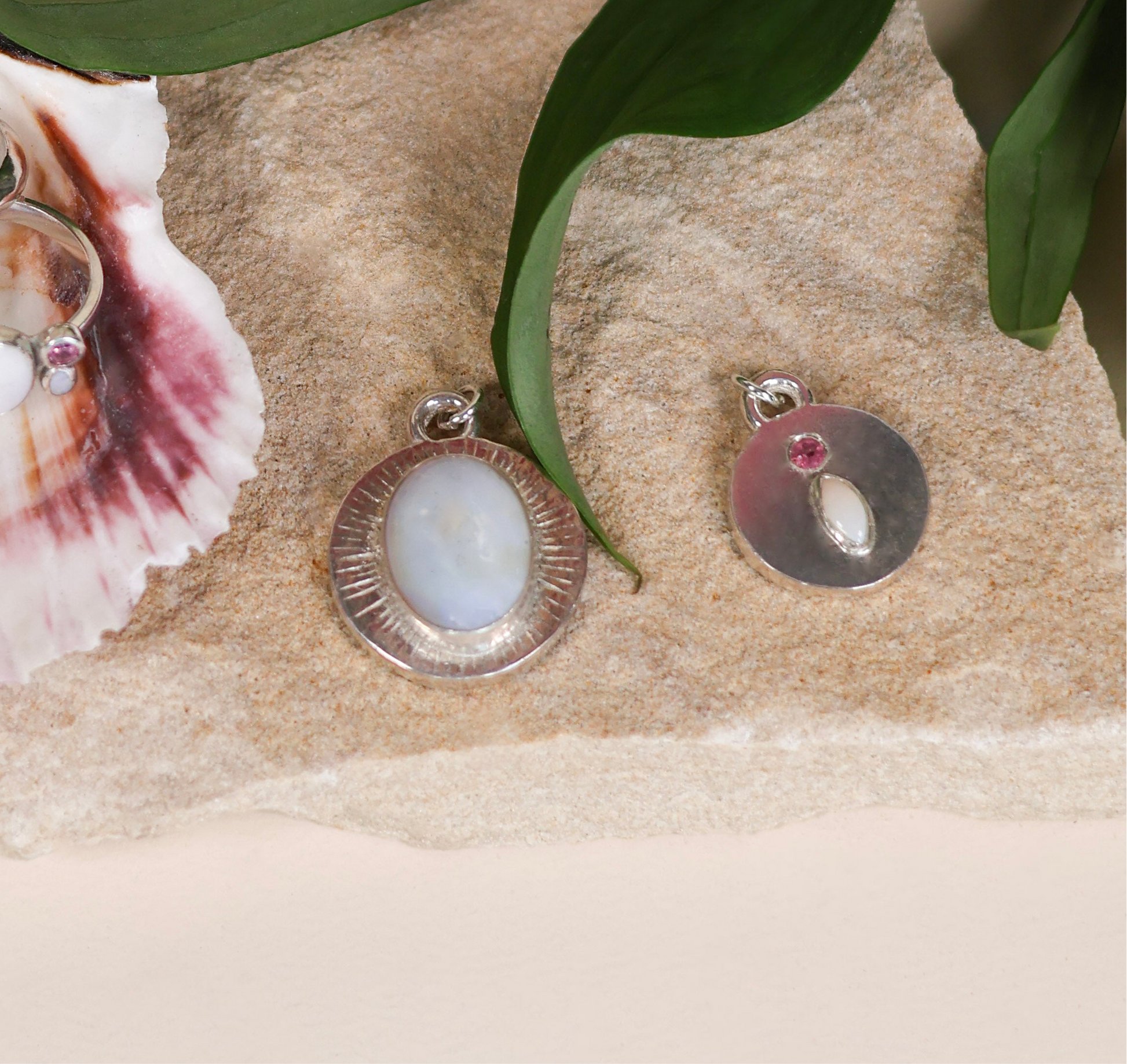 This 16 inch necklace features a large opal on an engraved circle pendant.