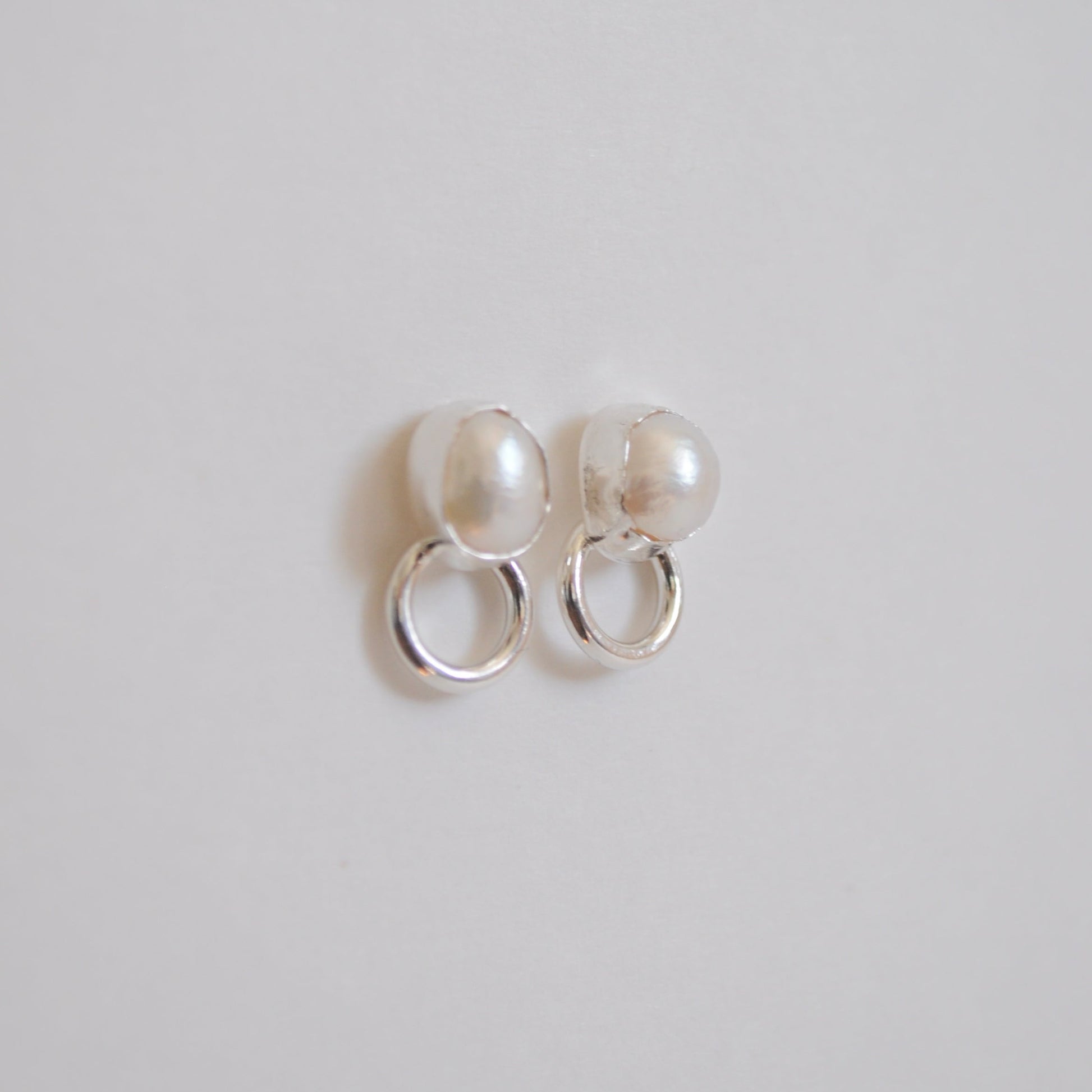 These everyday pearl studs feature a circle at the bottom for that special touch.